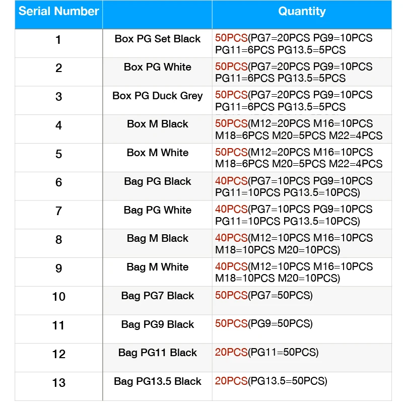 Model Number : PG13.5/PG16/PG11