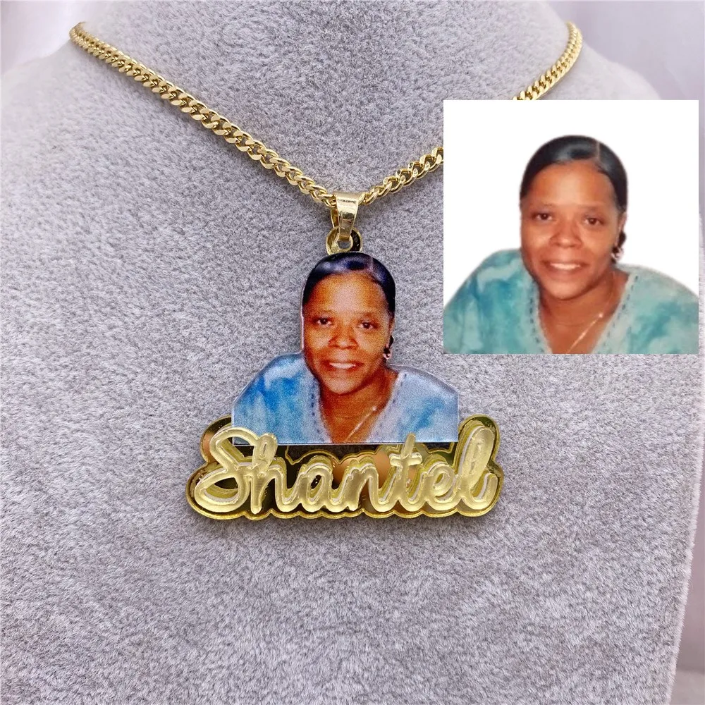 Custom Name Picture Necklace for Kids Personalized Acrylic Pendent Necklace Custome Memory Jewelry for Women Christmas Gift
