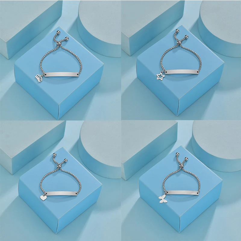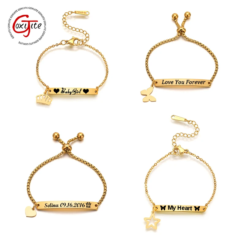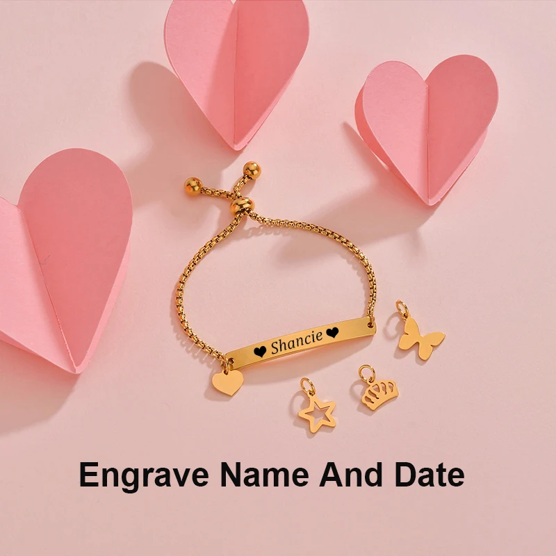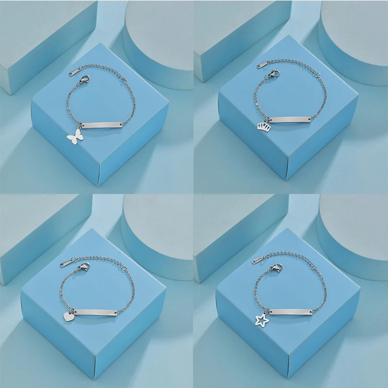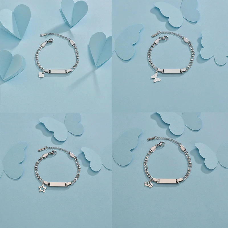 Feature : engrave name bracelet,custom Heart Crown Butterfly Star Engraving Date Bracelets